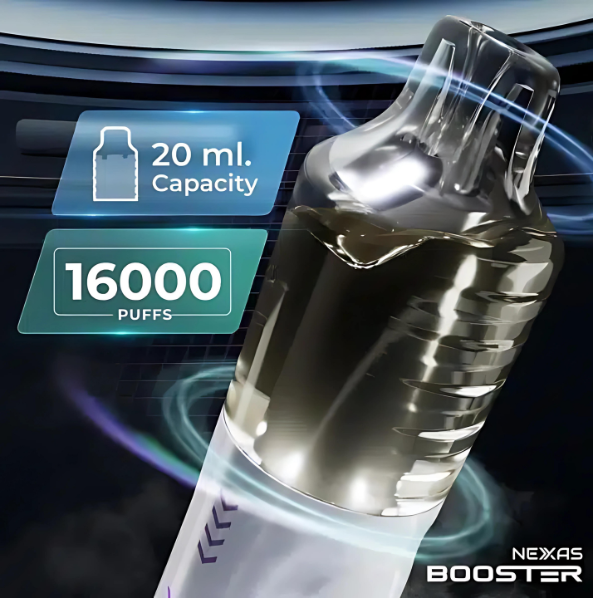 Nexas Booster 16000 Puffs คือ พอตใช้แล้วทิ้งขนาดใหญ่จุใจใช้ได้เป็นเดือน ด้วยความจุน้ำยา 20ML มาพร้อมกับแทงค์ที่มองเห็นน้ำยาด้านใน ช่วยให้ผู้ใช้รู้ปริมาณน้ำยา Nexas Booster 16K ถูกออกแบบและผลิตจากโรงงาน Zoovoo ซึ่งเป็นบริษัทลูกของแบรนด์ดังที่ทุกคนต้องรู้จักอย่าง Voopoo เพราะฉะนั้นมั่นใจในคุณภาพสินค้าได้เลย