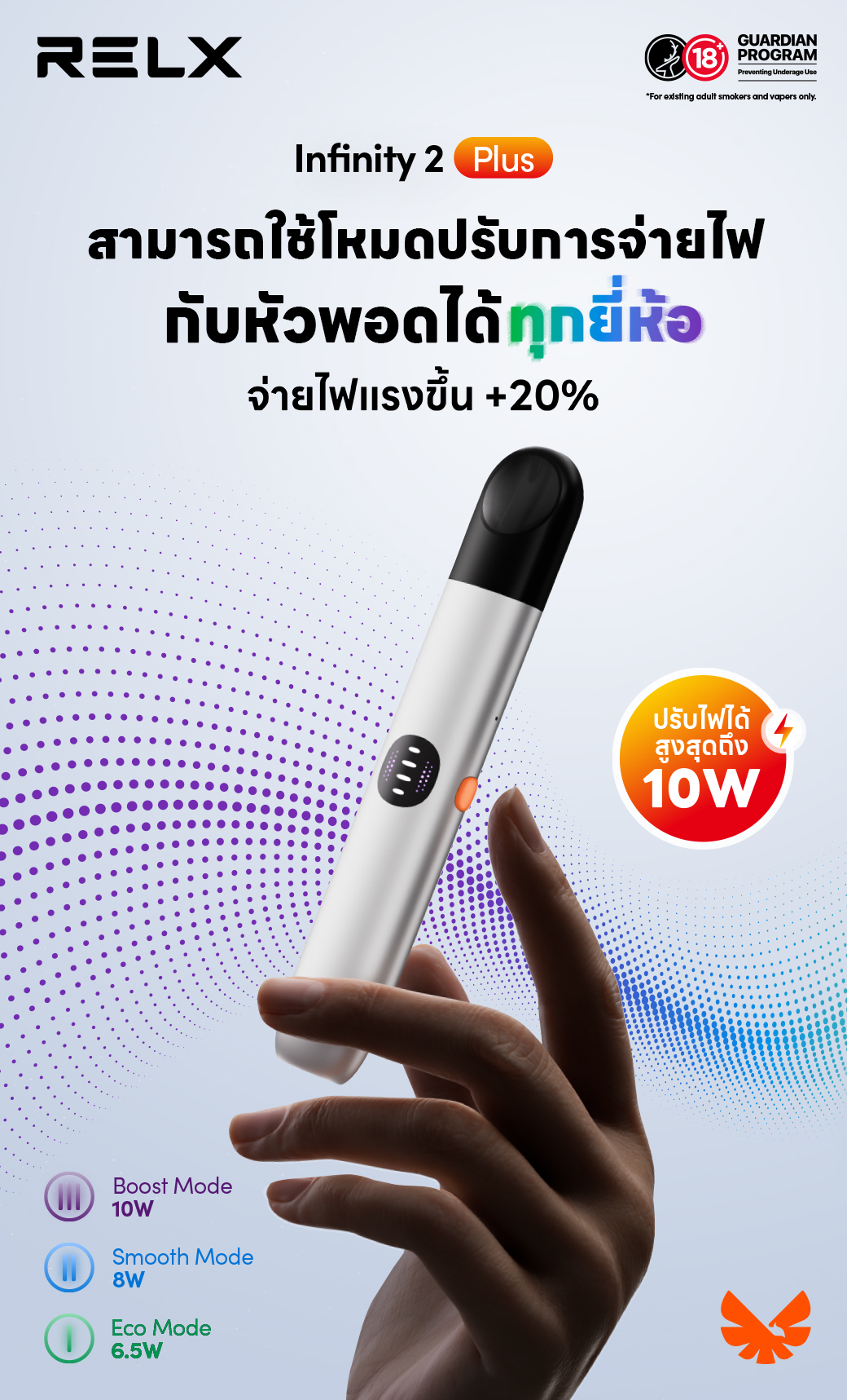 แต่การอัปเกรดครั้งนี้ทำให้มันโดดเด่นเหนือกว่ารุ่นก่อนหน้าอย่าง RELX Infinity 2 และเหมาะสำหรับผู้ที่ต้องการฟังก์ชั่นที่ปรับแต่งได้มากกว่าจากพอตรุ่นก่อนหน้า ด้วยการชนะรางวัล Vapouround Global Award Best Closed Pod System ประจำปี 2024 จึงยืนยันถึงคุณภาพของ RELX Infinity 2 Plus และทำให้มันเป็นตัวเลือกที่ยอดเยี่ยมสำหรับคนที่ต้องการประสบการณ์การสูบพอตที่ดีที่สุดในตอนนี้จาก Relx คุณจะไม่ผิดหวังเลย!